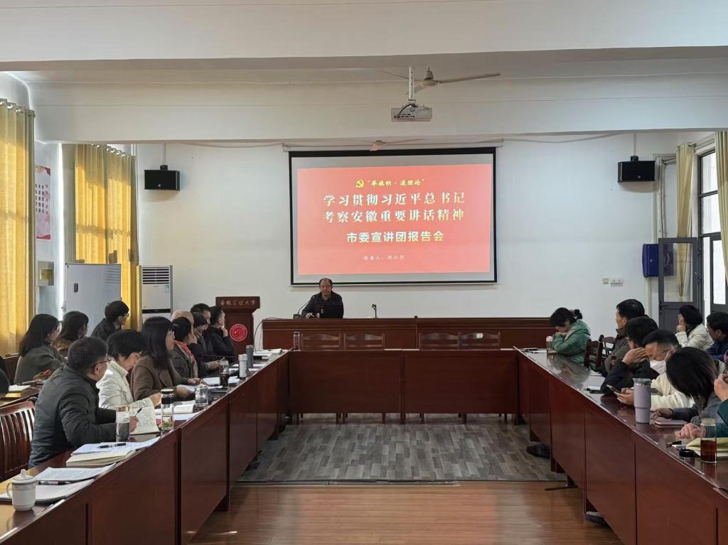 325报告厅举办学习贯彻习近平总书记考察安徽重要讲话精神宣讲报告会,市委讲师团倪松根老师应邀作宣讲报告。会议由海星体育直播
