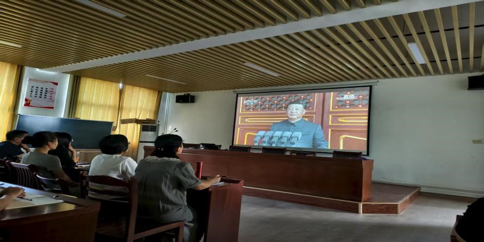 党政领导班子与研究生党支部党员一起集中观看纪念中国人民抗日战争暨世界反法西斯战争胜利80周年大会,深入学习贯彻习近平总书记系列重要讲话精神,组织开展专题学习和交流座谈活动。