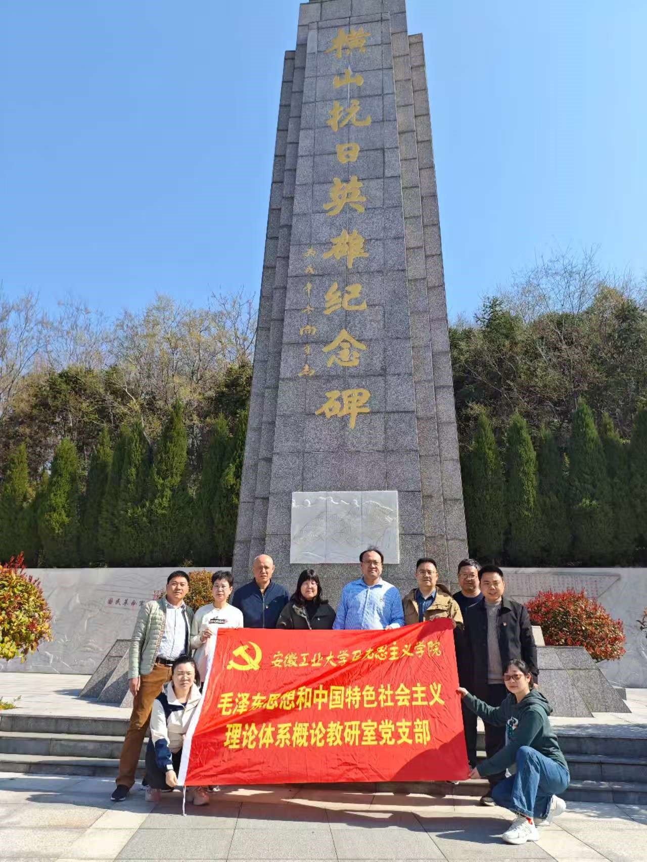 毛泽东思想和中国特色社会主义理论体系概论教研室党支部赴马鞍山市博望区横山抗日英雄纪念碑,开展“缅怀革命先烈 传承红色基因”主题党日活动。
