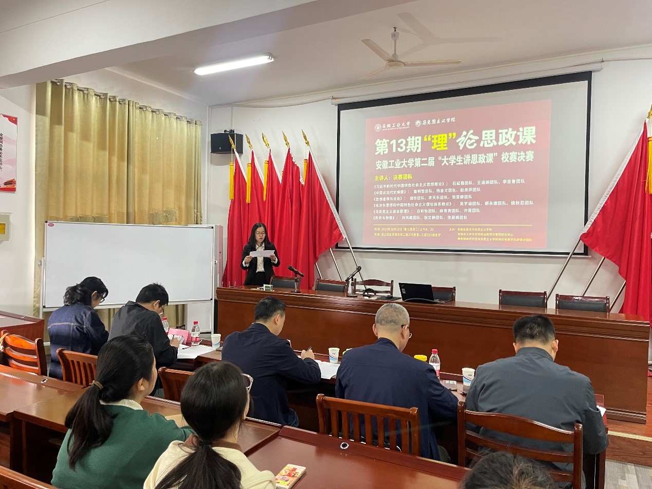 为坚持不懈用习近平新时代中国特色社会主义思想铸魂育人,深化思政课改革创新,拓展大学生参与思政课实践教学途径,不断提高思政课的针对性和吸引力,引导大学生坚定不移听党话、跟党走,根据《中共安徽省委教育工委关于组织开展第二届大学生讲思政课展示活动的通知》和《关于组织开展安徽工业大学第二届“大学生讲思政课”比赛展示活动的通知》,10月10日上午,安徽工业大学第二届“大学生讲思政课”校赛决赛在海星体育直播