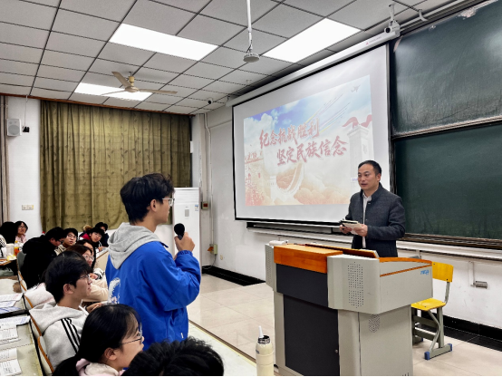 校长曾杰从纪念中国人民抗日战争胜利80周年阅兵式讲起,系统讲述了中国人民抗日战争的世界贡献、伟大意义及抗战精神的深刻内涵,并在课堂互动环节围绕“当代青年如何弘扬抗战精神”与学生热烈探讨,引导学生将抗战精神融入专业学习,把个人理想自觉融入民族复兴伟业。