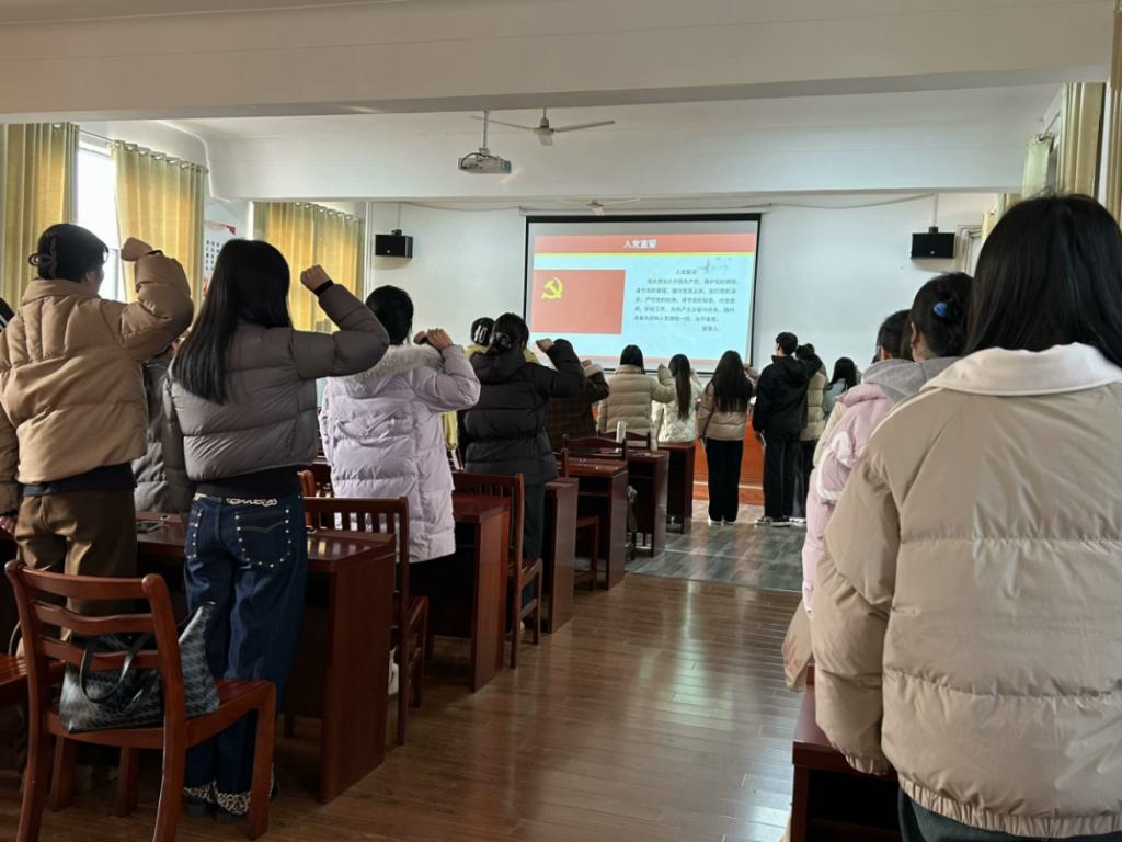 紧接着,举行新发展党员入党宣誓仪式在庄严的《国际歌》中拉开了序幕。支部为新发展的6位同志发放了党徽、党章以及党员学习笔记本,并鼓励他们矢志践行初心使命,赓续共产党人的精神血脉,鼓起迈进新征程的精气神,投身实现中华民族伟大复兴的宏伟事业,不辜负党的期望、人民的期待、民族的重托。