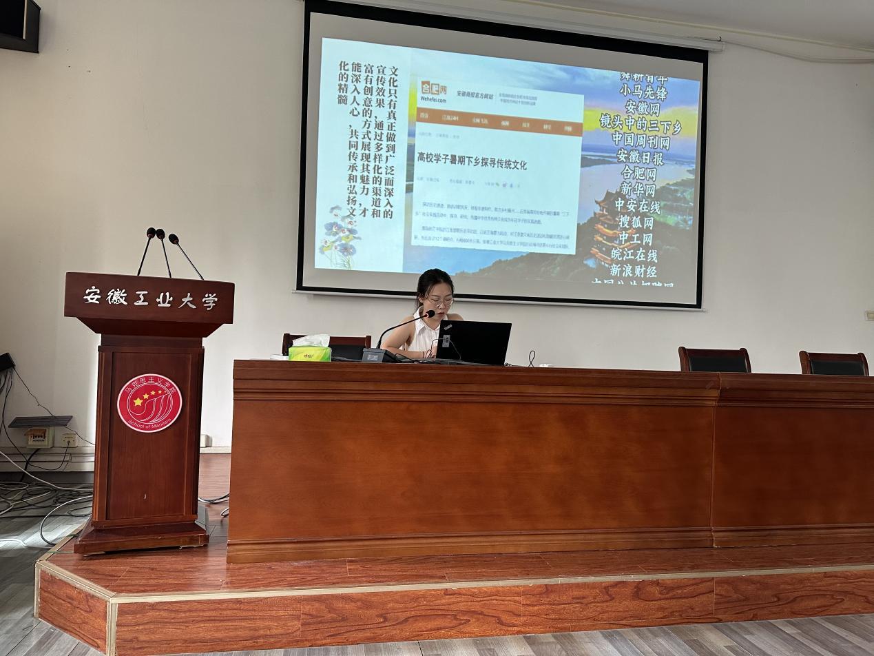 安徽工业大学诗城寻迹青年行社会实践队通过开展人物专访与问卷调查、拍摄“半城山水半城诗”行走的思政课等形式开展实践活动。在实践过程中,受到马鞍山共青团、当涂县团委等多家媒体的关注,并受邀参加“青春诗城行,别young文化游”活动。实践成果被中青校园、安徽学联、安徽校媒、安徽日报等16个国家级媒体、11个省级媒体和9个地市级媒体报道。