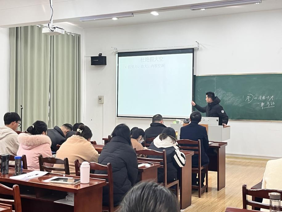 韦子平老师作“公考漫谈”的讲座,林忠心主持会议。