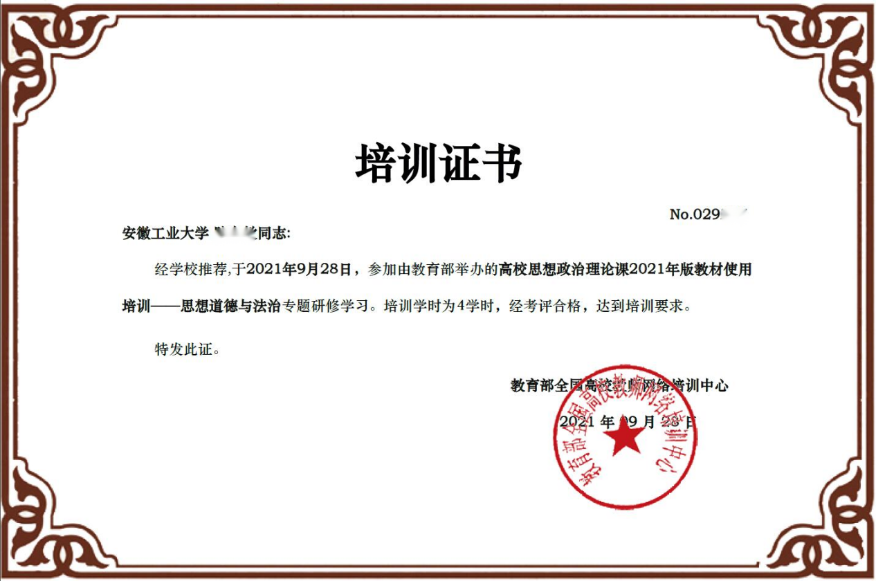 全国高校思想政治理论课2021年版教材使用培训举行 我校思政课教师全员参加全部取得培训合格证书