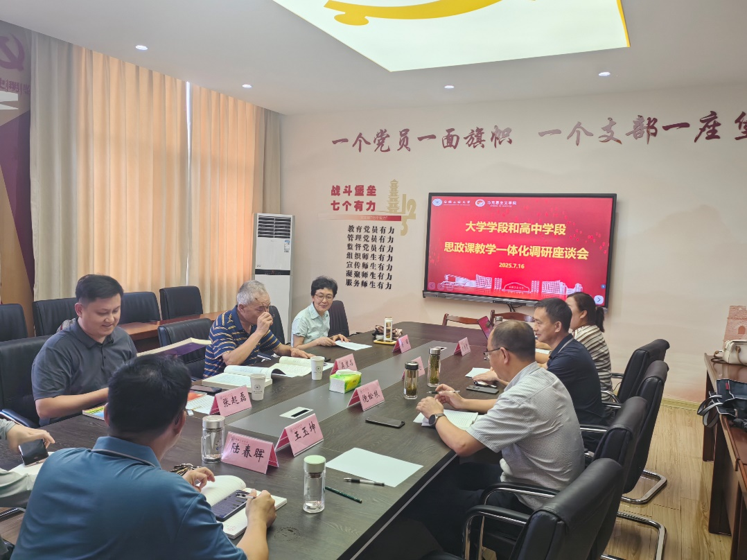 组织开展大学学段和高中学段思政课教学一体化交流座谈会,会议邀请了马鞍山市大中小学思政教育一体化建设研究中心吴望民,市第二中学特级教师、正高级教师李丽和市学科带头人张起磊来海星体育直播