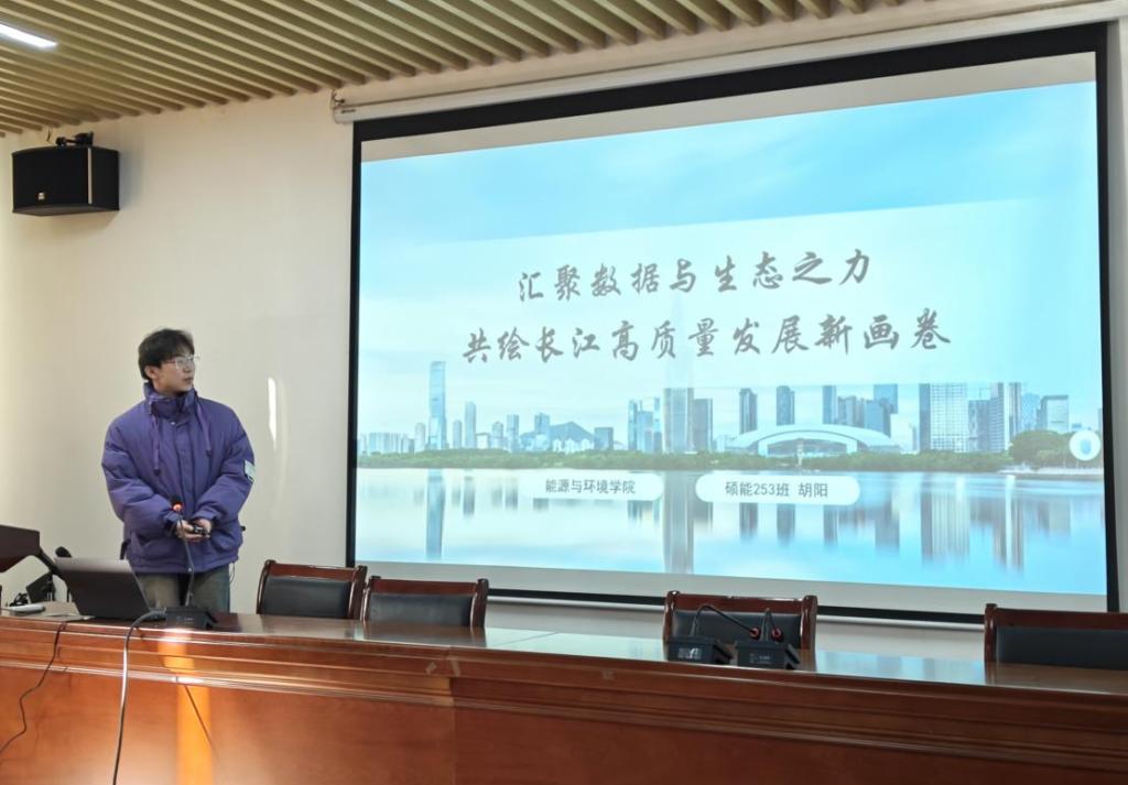 研究生胡阳同学受邀作题为“汇聚数据与生态之力,共绘长江高质量发展新画卷”的主题宣讲。院党委副书记、副院长林忠心出席活动,全体研究生参加学习,活动由辅导员徐小曼主持。