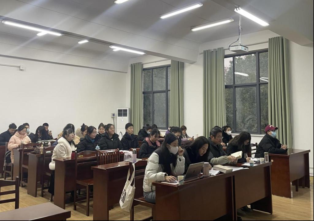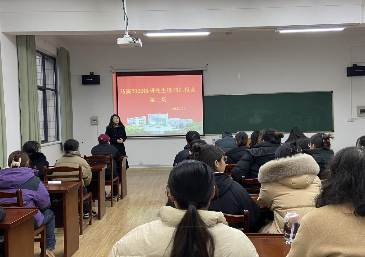 举办第二场“读经典 悟原理 奔征程”研究生读书汇报交流会。汇报交流会由2022级班主任张志主持,许屹山老师、刘丹丹老师、金雅老师点评,2022级全体研究生参加了会议。