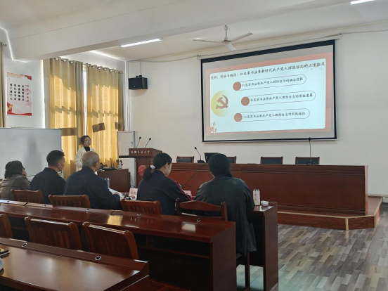 教师王玉坤、阮超群、牛云芳、李春华、刘丹丹老师组成,报告会由2024级研究生辅导员吴少华主持,参会人员包括马院教师及2024级研究生。
